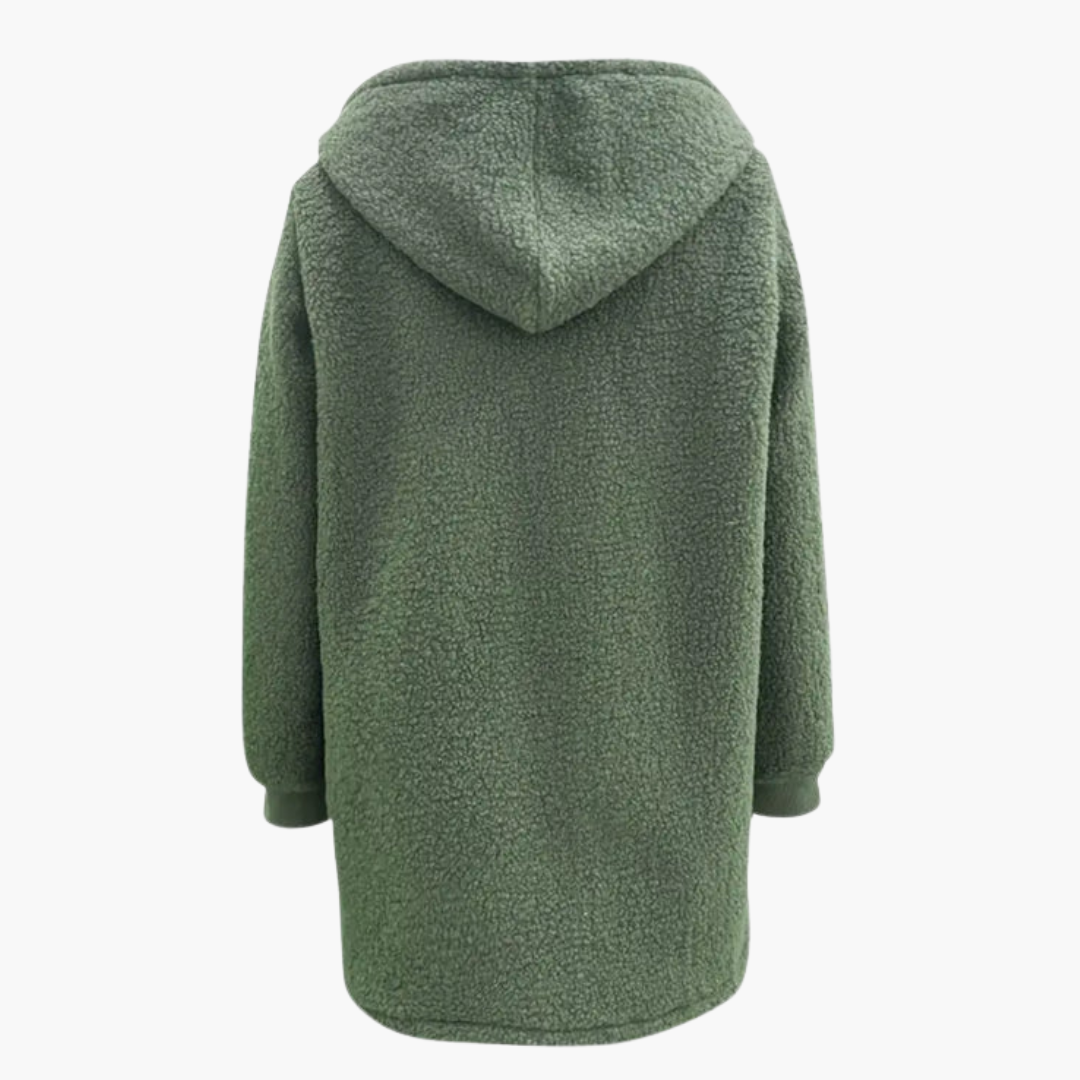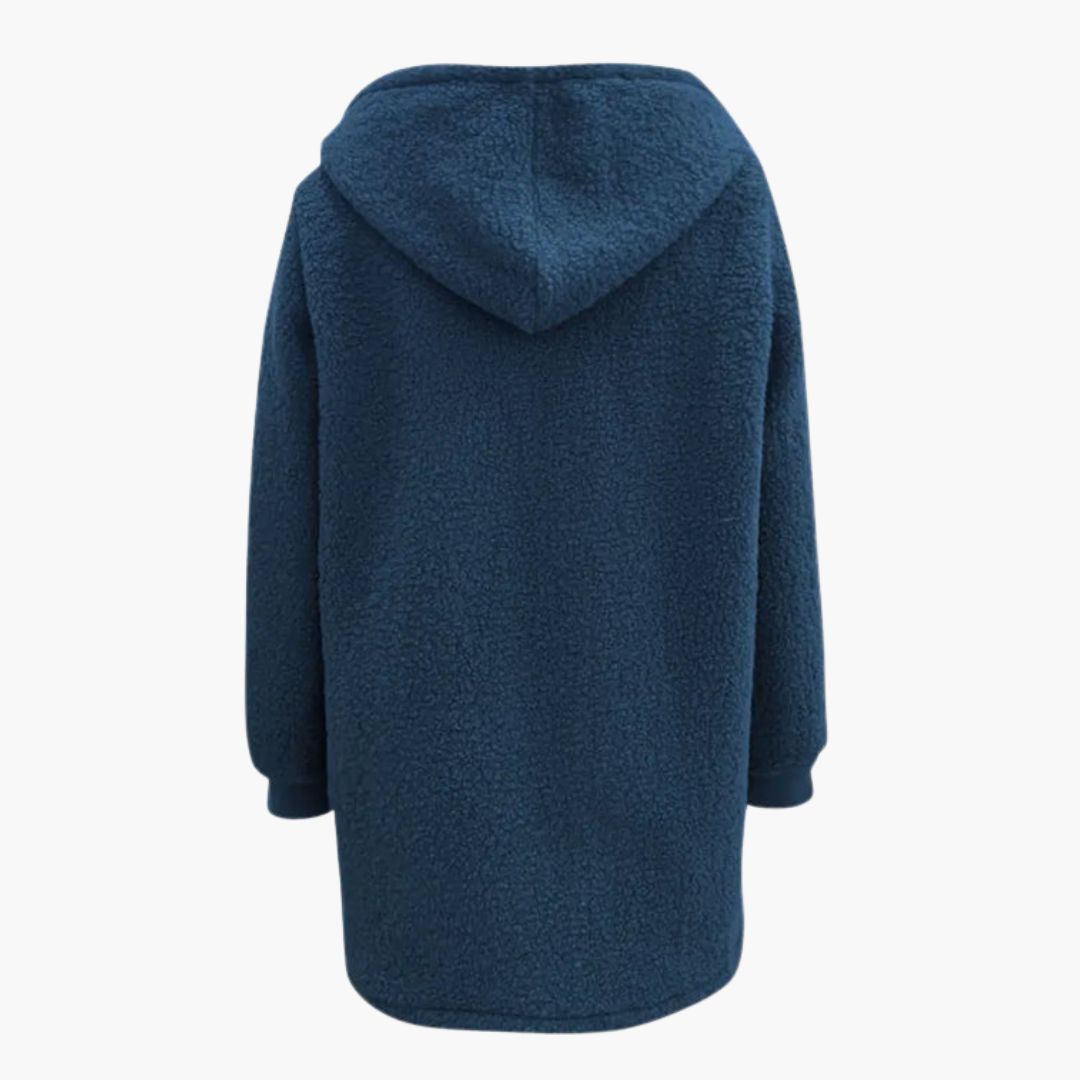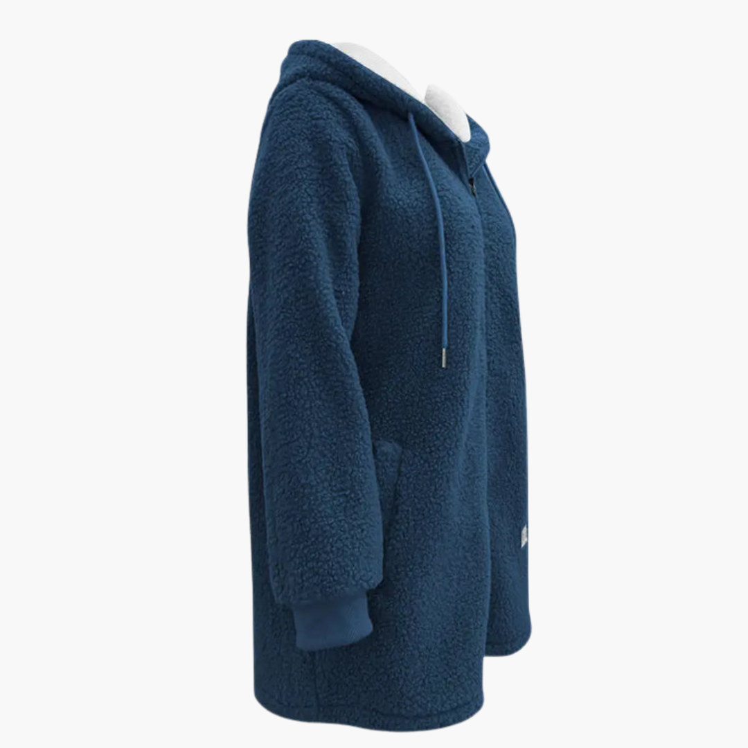 Model z pełnym zamkiem z przodu i regulowanym kapturem ze sznurkiem. Wykonana z materiału typu polar, posiada długie rękawy i dwie boczne kieszenie. Średnia długość i prosty krój sprawiają, że nadaje się do noszenia w chłodniejsze dni.
