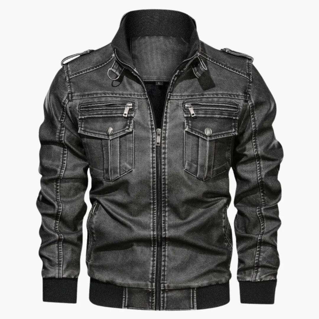 Męska kurtka jeansowa z przednim zamkiem i wieloma kieszeniami