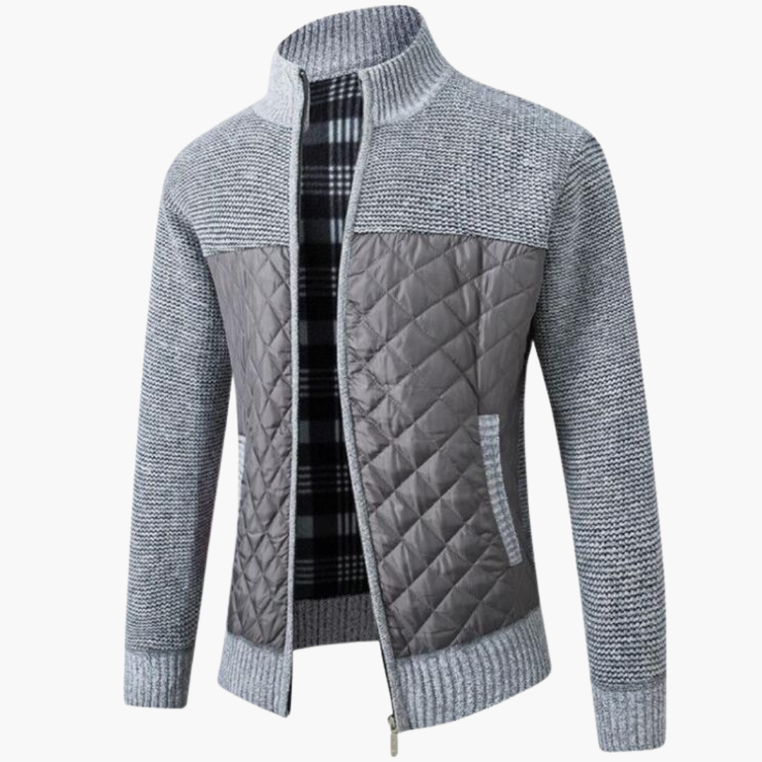Męska kurtka zapinana na zamek z pikowanym przodem i dzianinowymi rękawami