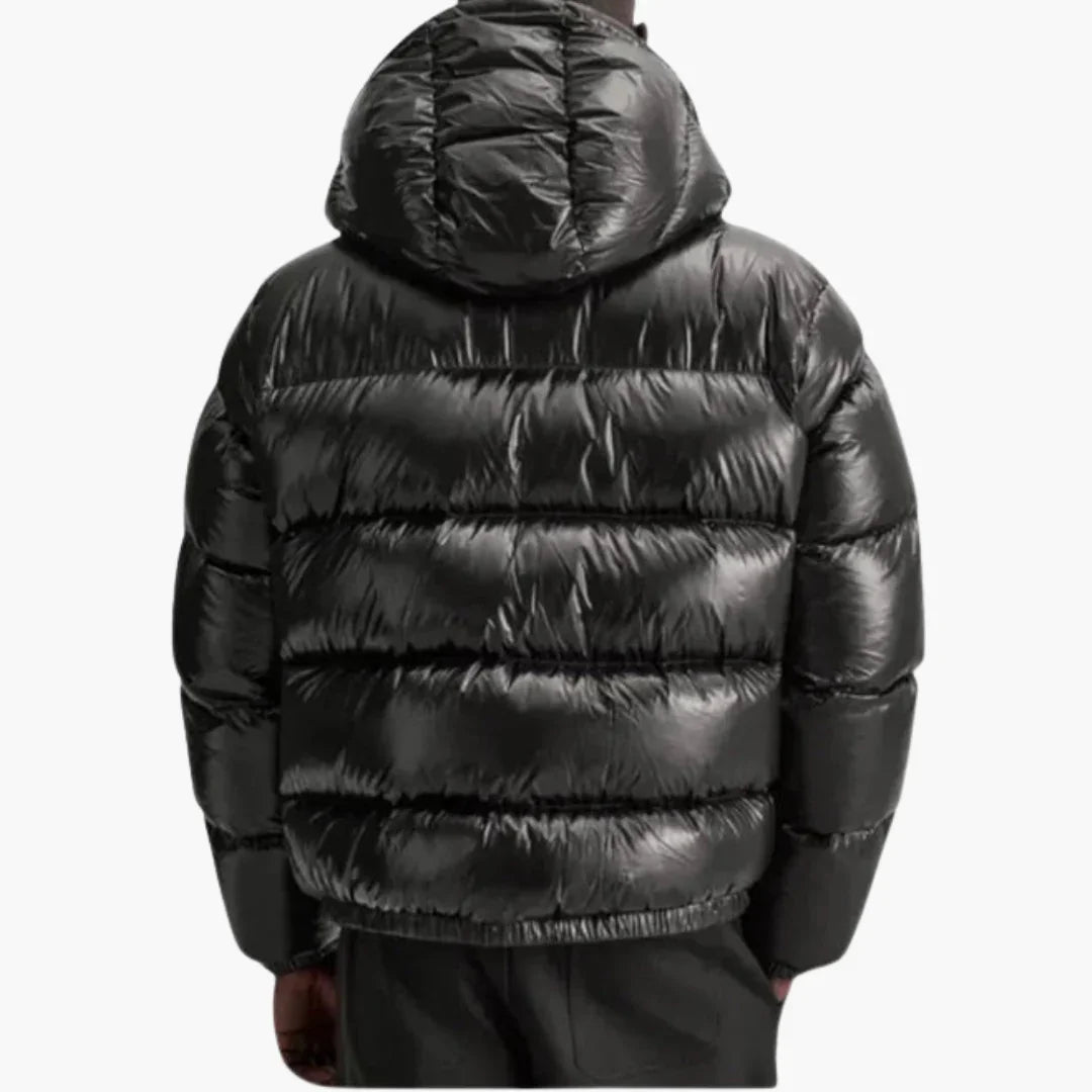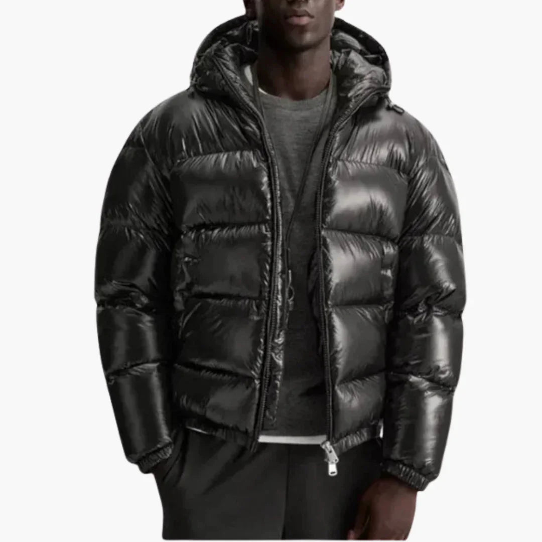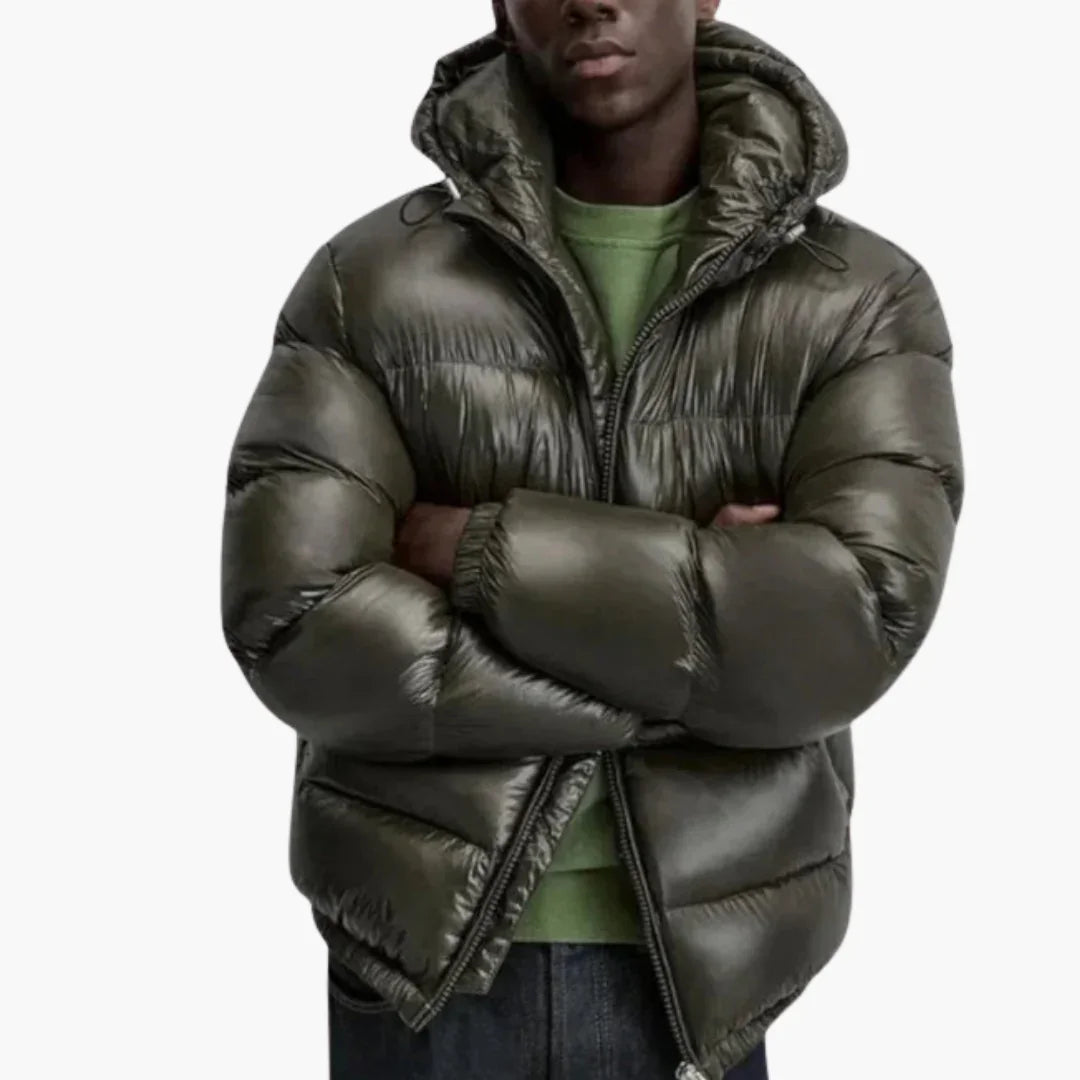 Męska pikowana kurtka puchowa z kapturem i przednim zamkiem