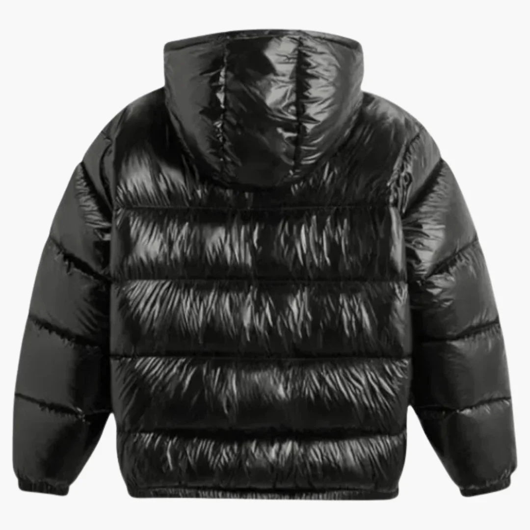 Ta męska pikowana kurtka ma zamek błyskawiczny z przodu oraz przymocowany kaptur. Model posiada długie rękawy i poziome przeszycia utrzymujące wypełnienie. Dół sięga do bioder, a wykończenie nadaje całości uporządkowany wygląd odpowiedni na chłodniejsze dni.