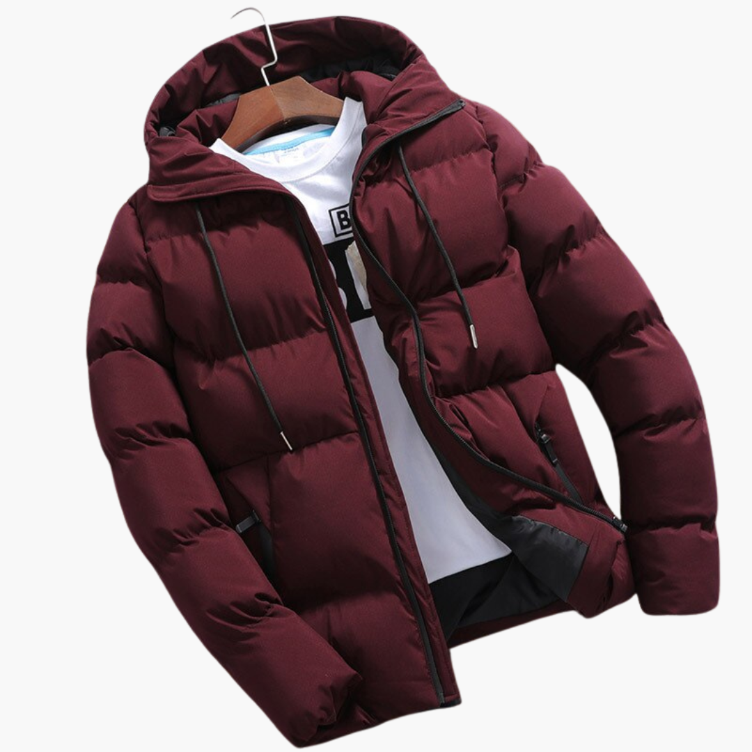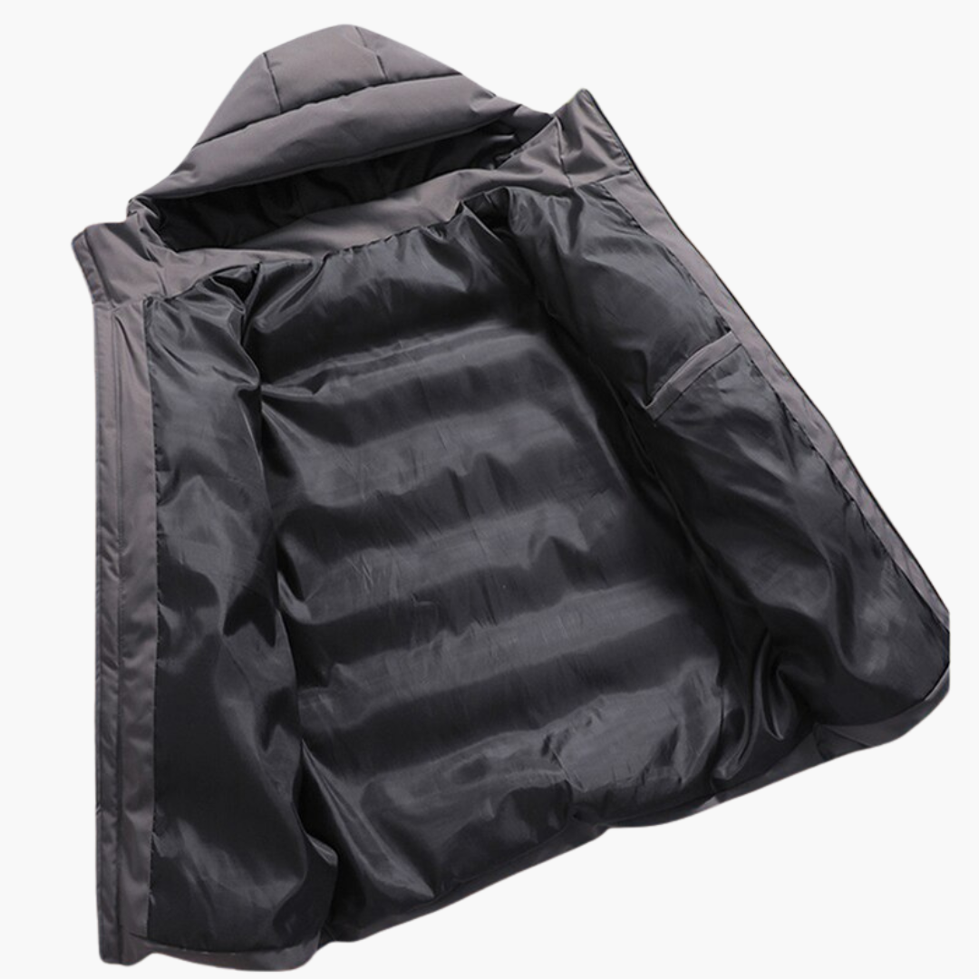 Męska pikowana kurtka z kapturem, zamkiem błyskawicznym i kieszeniami bocznymi