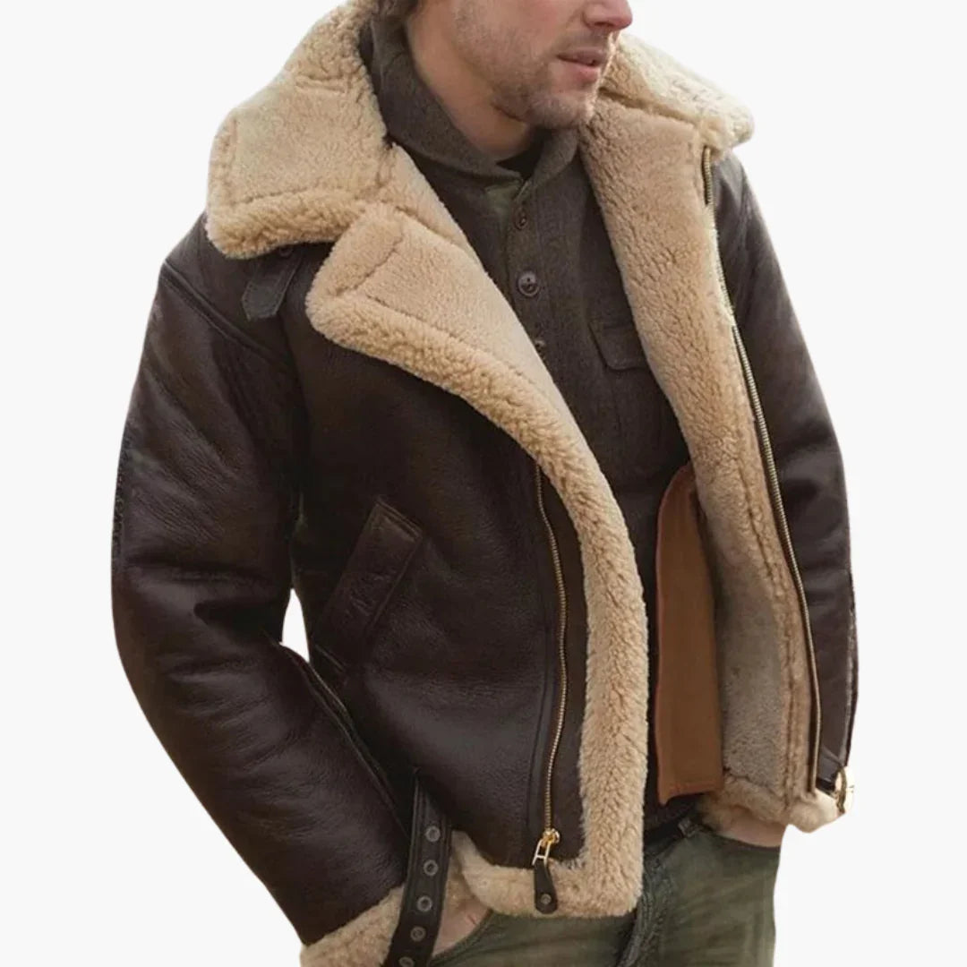 Kurtka lotnicza męska z szerokim kołnierzem i podszewką z imitacji futra